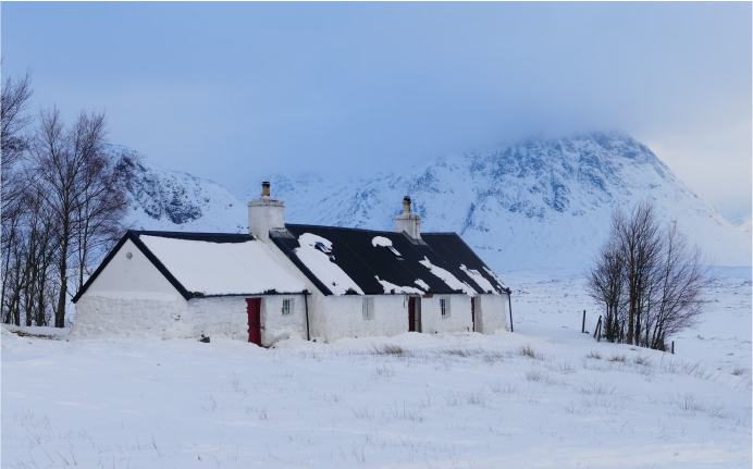 เช่นเดียวกับประเทศอื่นๆในยุโรปส่วนใหญ่ ฤดูหนาวของสก็อตแลนด์ เป็นช่วงเวลาที่ ครอบคลุมไปด้วยบรรยากาศแห่งความเงียบเหงาเป็นบางครั้ง เนื่องจากดวงอาทิตย์ ส่องแสงน้อยมาก อย่างไรก็ตาม หากปกคลุมร่างกายให้มิดชิดด้วยเครื่องแต่งกาย ที่เหมาะสมแล้ว ฤดูหนาวก็อาจจะเป็นช่วงเวลาช็อปปิ้งที่สนุกสนาน โดยเฉพาะช่วงหลัง เทศกาลคริสต์มาสที่ร้านค้าต่างๆนำของมาลดราคาอย่างมโหฬาร ยิ่งกว่านั้น นักท่องเที่ยวยังสามารถเล่นสกีได้ในรีสอร์ท หลายๆแห่งทางเหนือของสก็อตแลนด์
